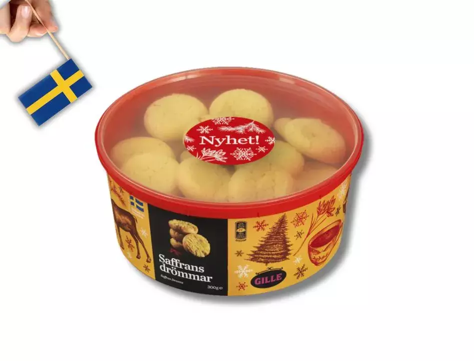 Bring the taste of Swedish tradition into your home with **Gille SaffransDrmmar**. Order now and savor the unique, aromatic flavor of saffron in these delightful cookies! Perfect for enjoying yourself or sharing with friends and family.