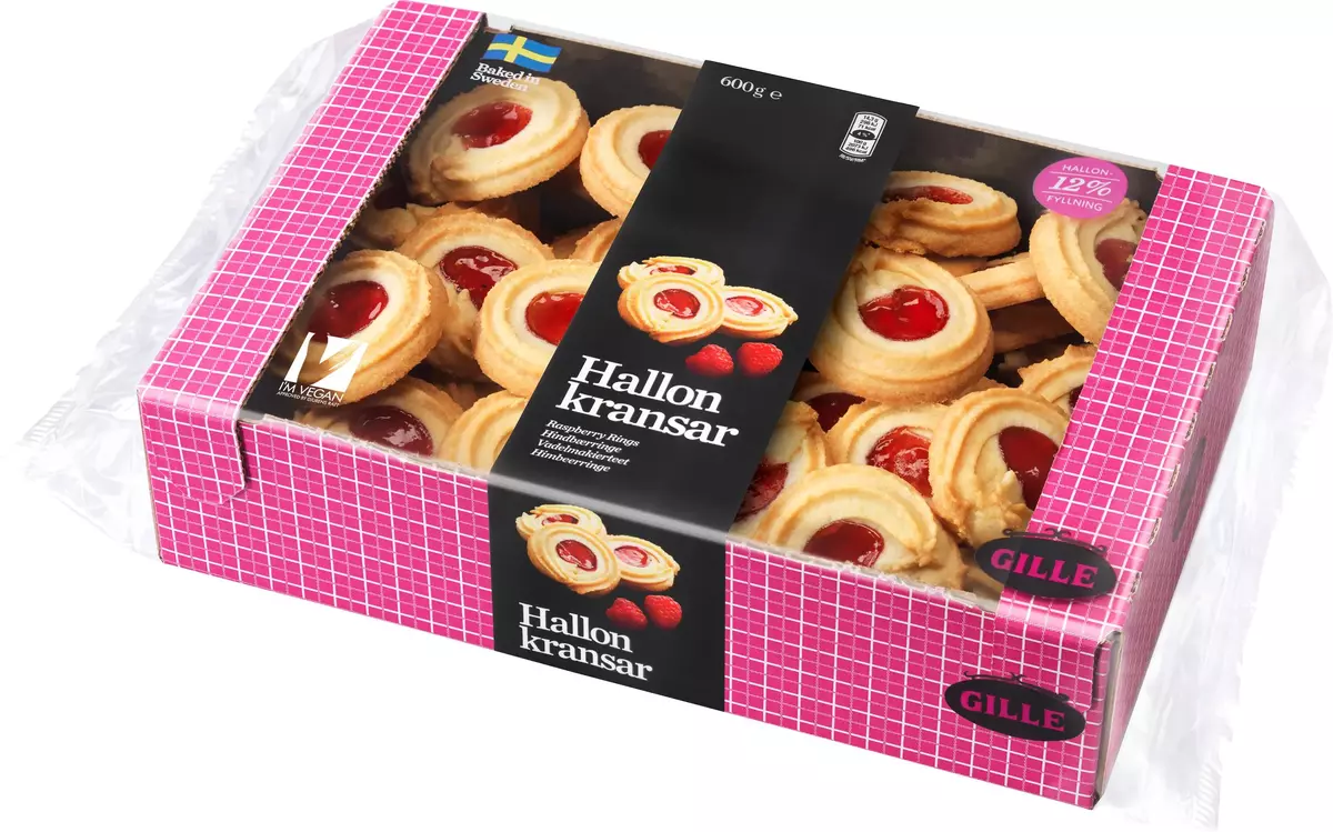 1 Box of Gille HallonKransar 600g (21.16 Oz), Raspberry cookies, Swedish Fika, c