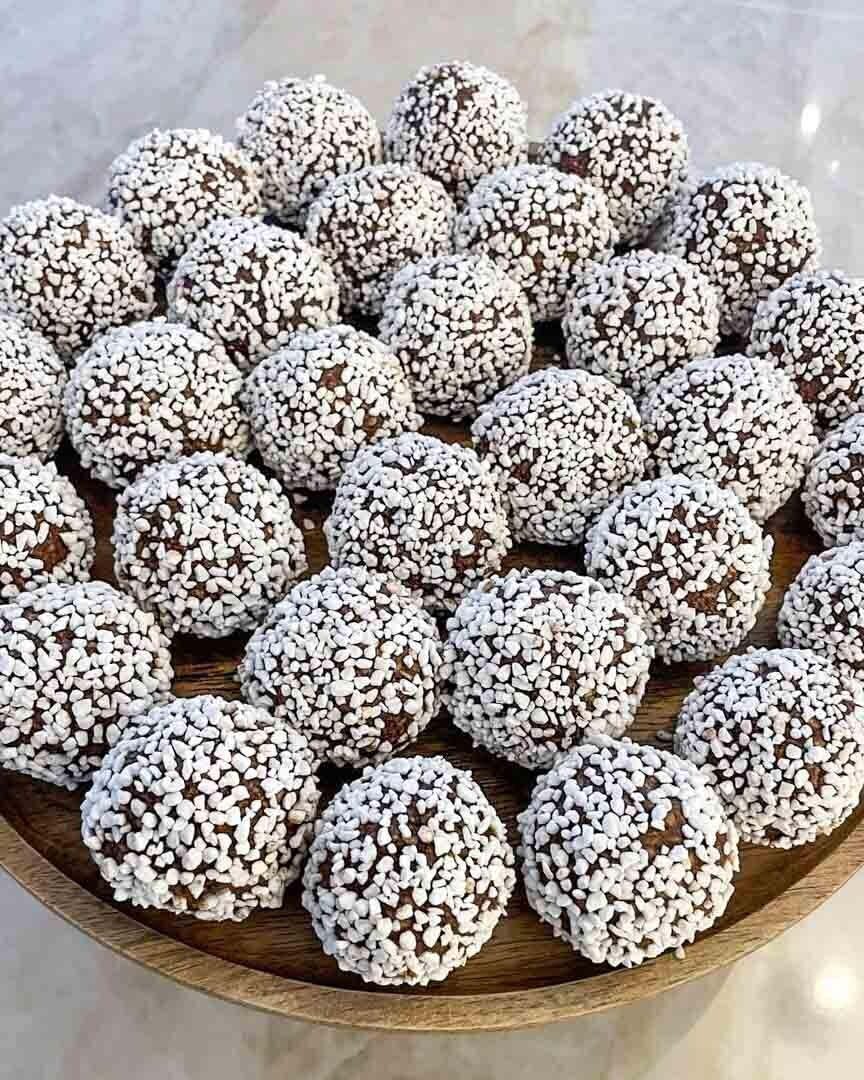 Chokladbollar (chocolate balls) – rolled in pearl sugar for texture and contrast