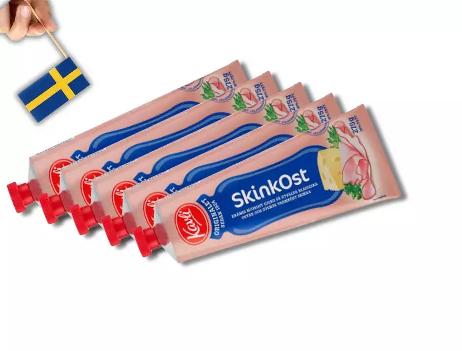 Experience the delicious combination of creamy cheese and savory ham with **Kavli SkinkOst**. This 275g (9.70 oz) squeeze tube is filled with smooth, flavorful cheese spread blended with real ham, creating a versatile and convenient option for snacks, sandwiches, and cooking. Whether you're enjoying it on a cracker, in a sandwich, or as a topping for baked dishes, Kavli SkinkOst is perfect for adding a burst of cheesy goodness with a hint of smokiness to any meal.