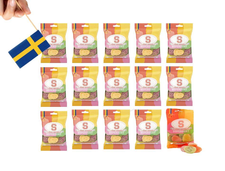 15 Bags of S-Märke Supersurt (super sour) 80g (2.82 Oz), swedish candy
