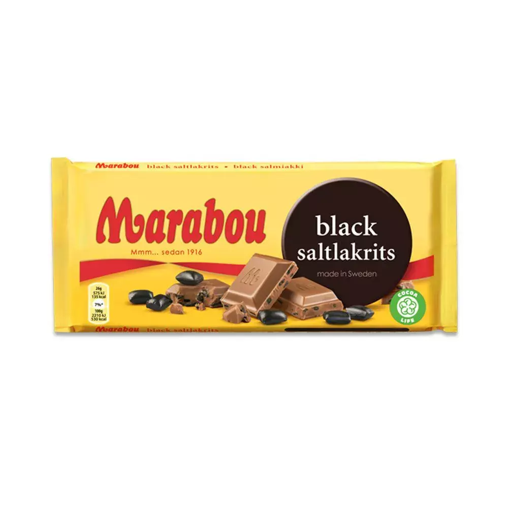 Marabou is renowned for its premium chocolate, and the Black Saltlakrits variety is no exception. Each piece of chocolate is a work of art, carefully prepared to offer a smooth, velvety, and indulgent cocoa experience. The perfect blend of sweet and salty, it is a testament to Marabou's commitment to quality.