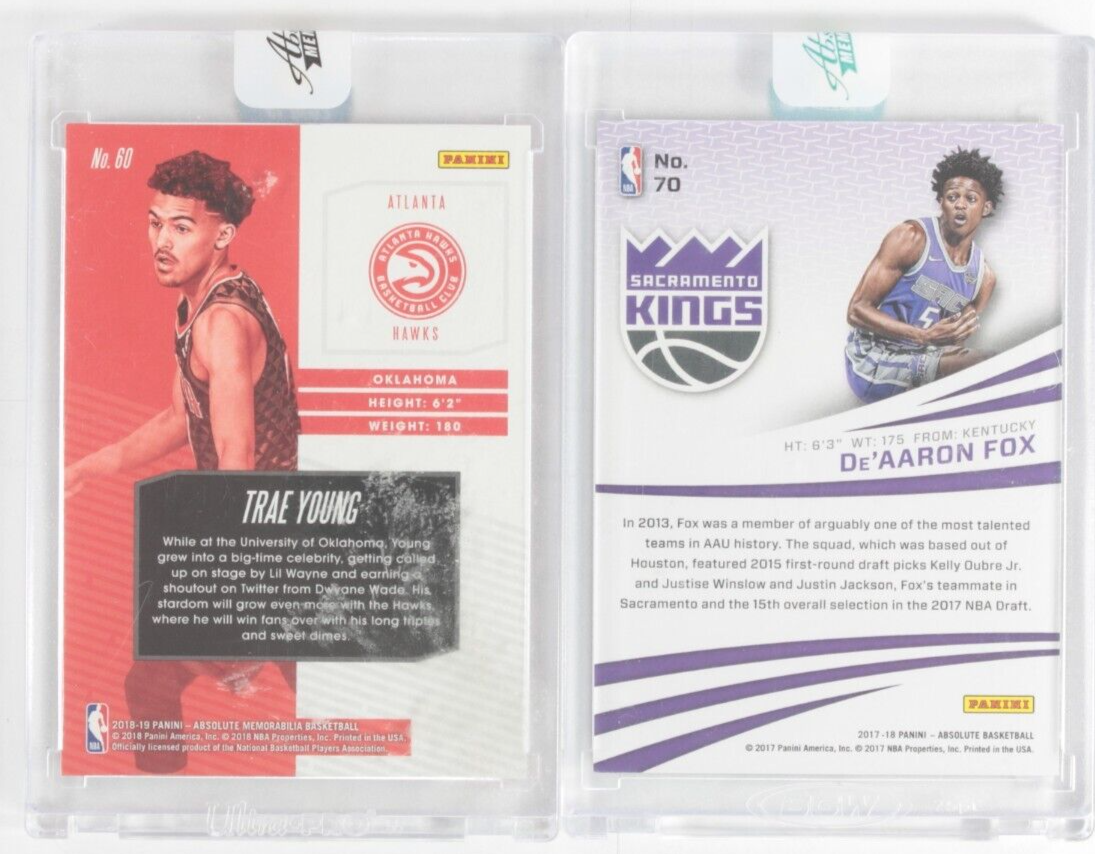 Lot De 2 Ungraded Panini Absolute Souvenirs NBA Cartes De Aaron Fox / Trae Jeune