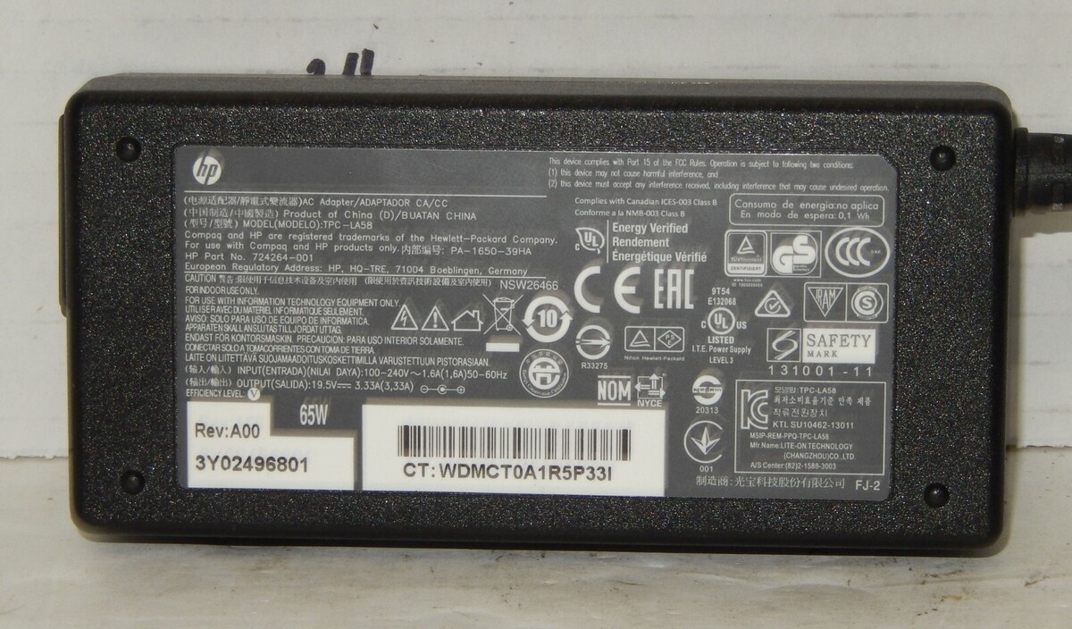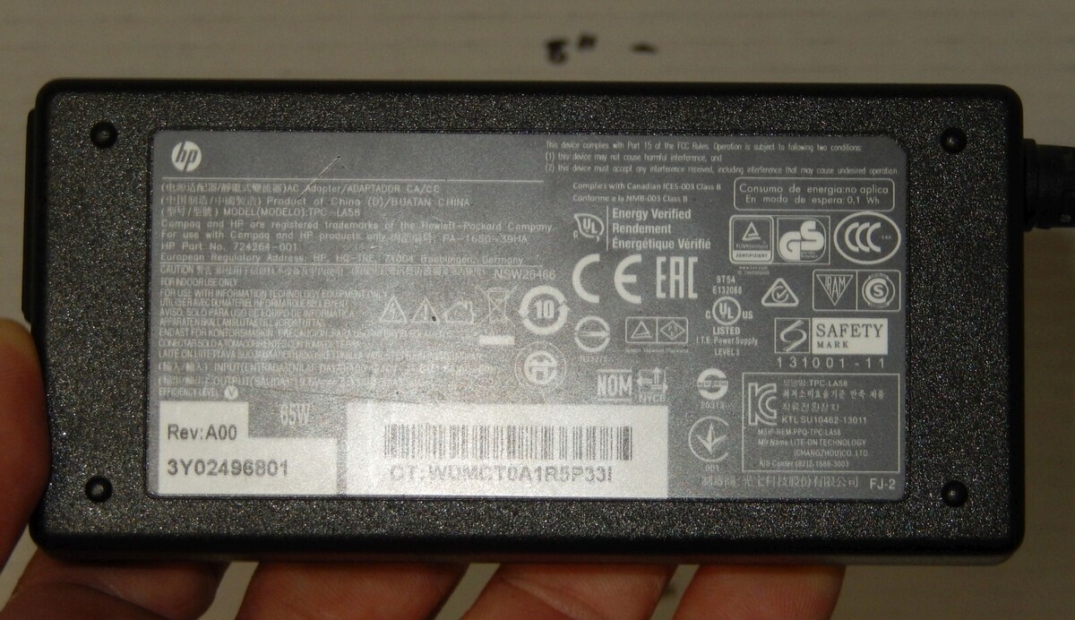 HP Power adapter TPC-LA58 Laptop Battery Charger Input 100-240v Output 19.5v 65w
