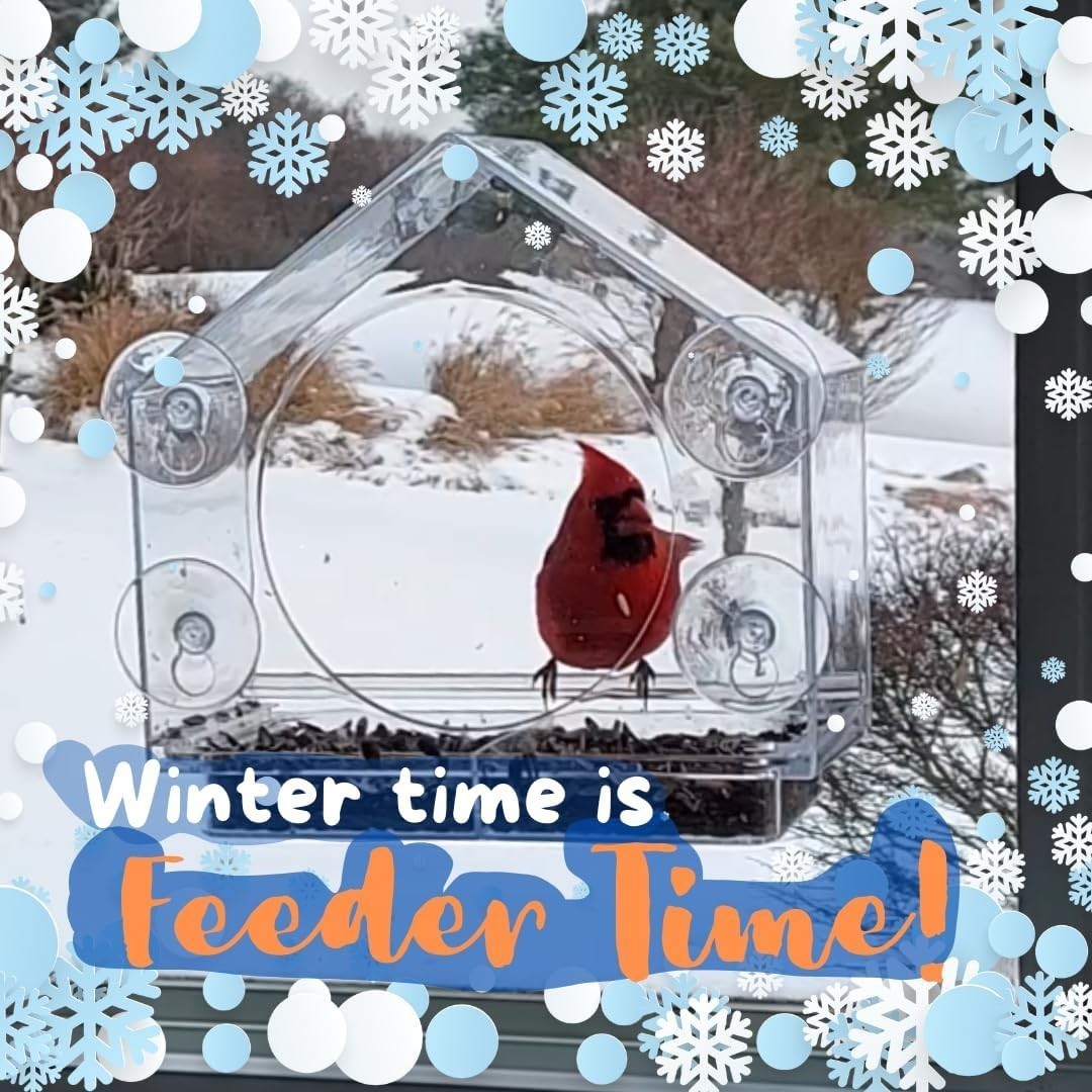 Elegant Crystal Window Bird Feeder with Sliding Tray for Easy Refills - 15 Oz