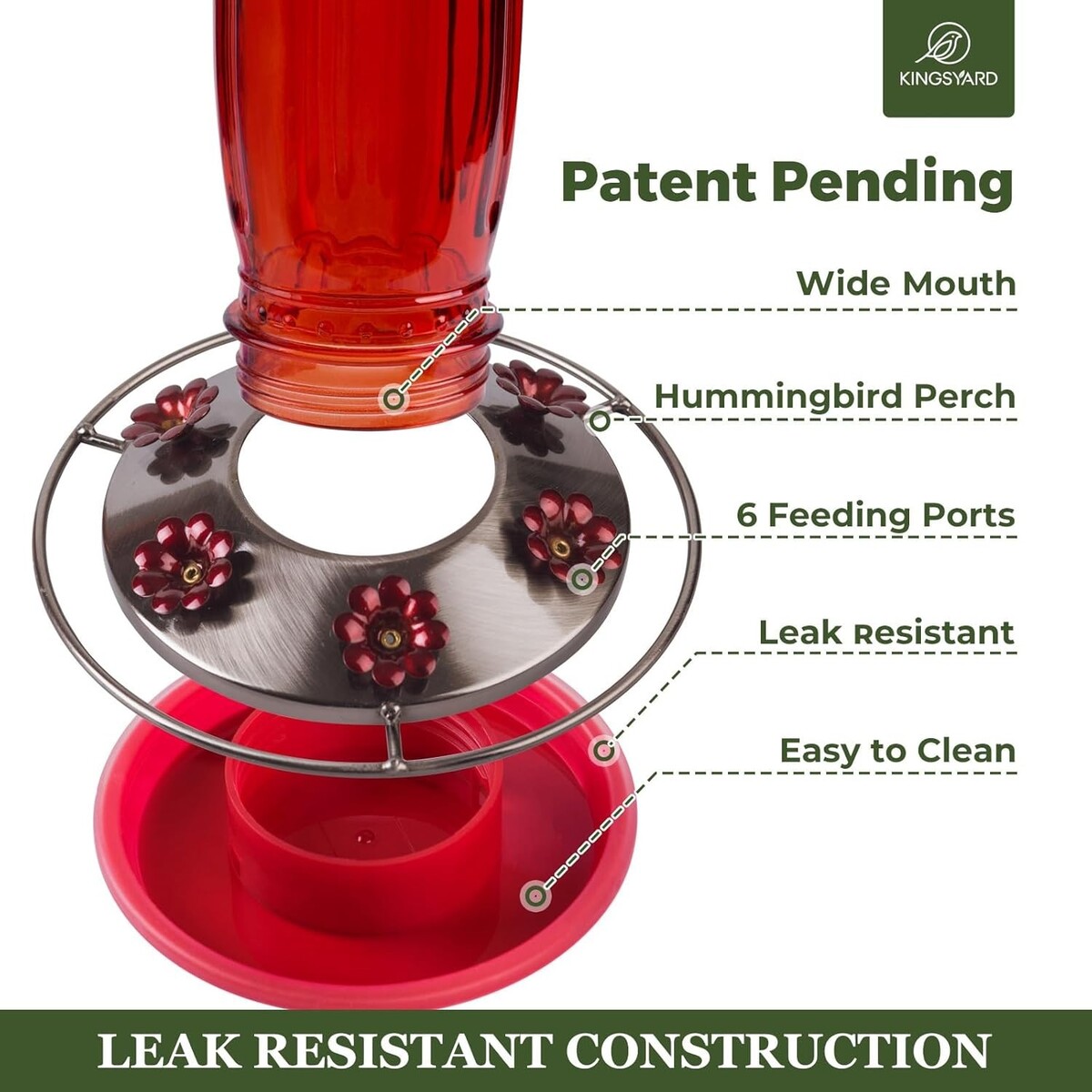 Generous 16 oz. capacity to ensure you have enough nectar for your delightful feathered friends.