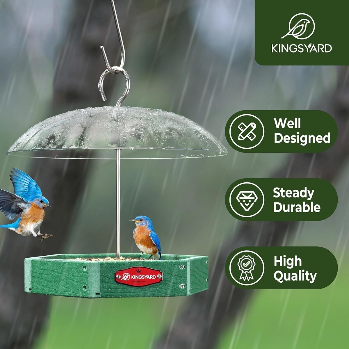 Weatherproof Durable: Constructed with recycled plastic boards and sturdy metal, our feeder resists fading, cracking, and dents better than traditional wood. Built to withstand rain, snow, and sun for -round use.