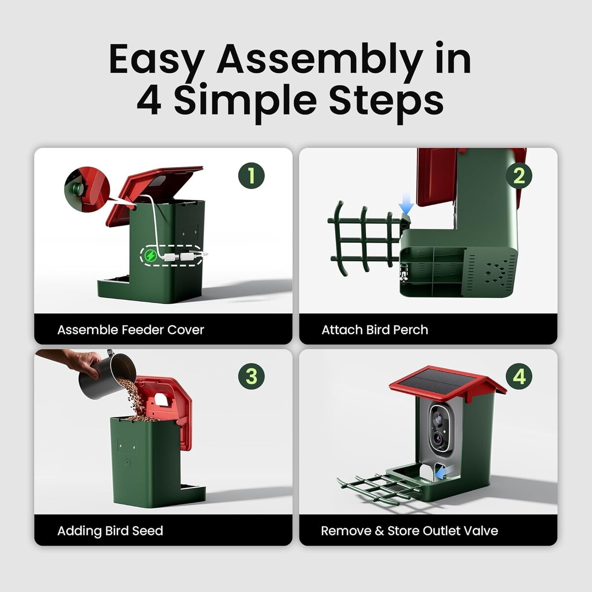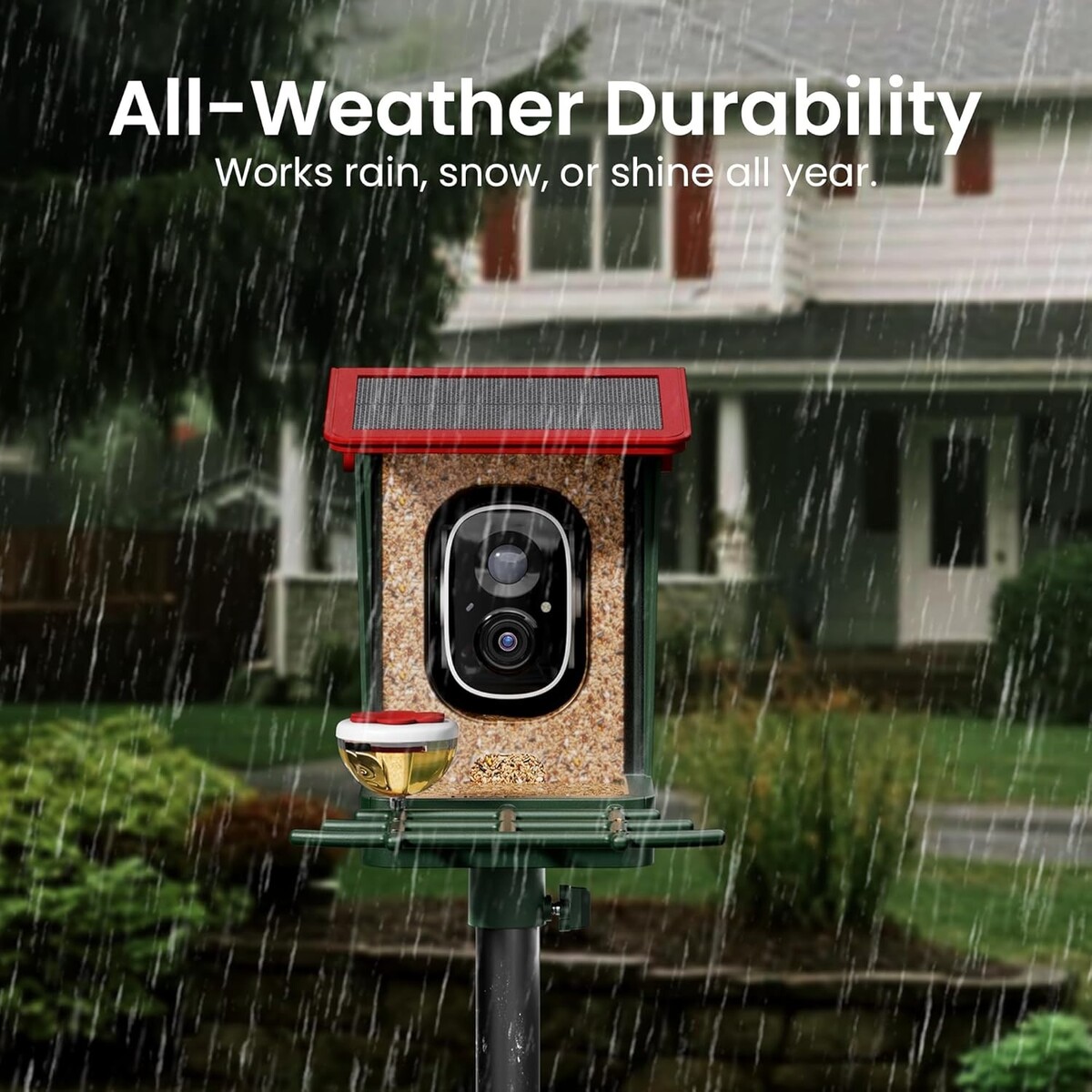 Solar-Powered Convenience: Enjoy uninterrupted birdwatching with a built-in solar panel, designed for hassle-free, sustainable use in all seasons.