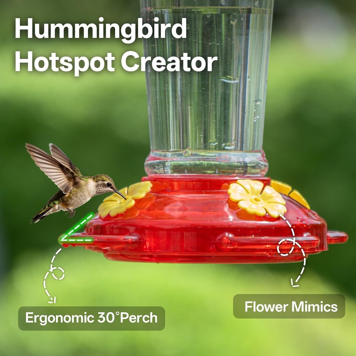 Comfort-First Feeding Design: Engineered with a unique 30 inclined base, offering hummingbirds a natural feeding posture with comfortable perches for multiple birds.
