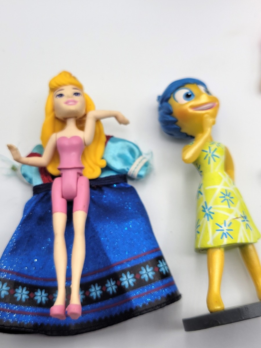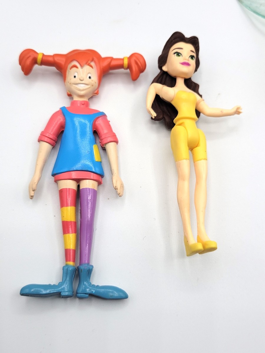 ? This product is a set of 12 assorted princess and female character mini dolls in vintage condition.