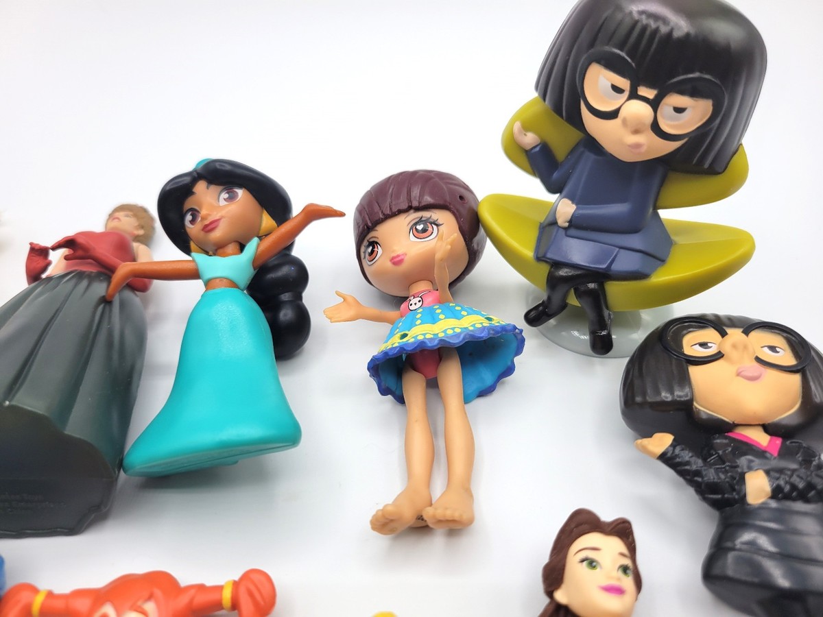 12 Assorted Princess & Female Character Mini Dolls Vintage Condition