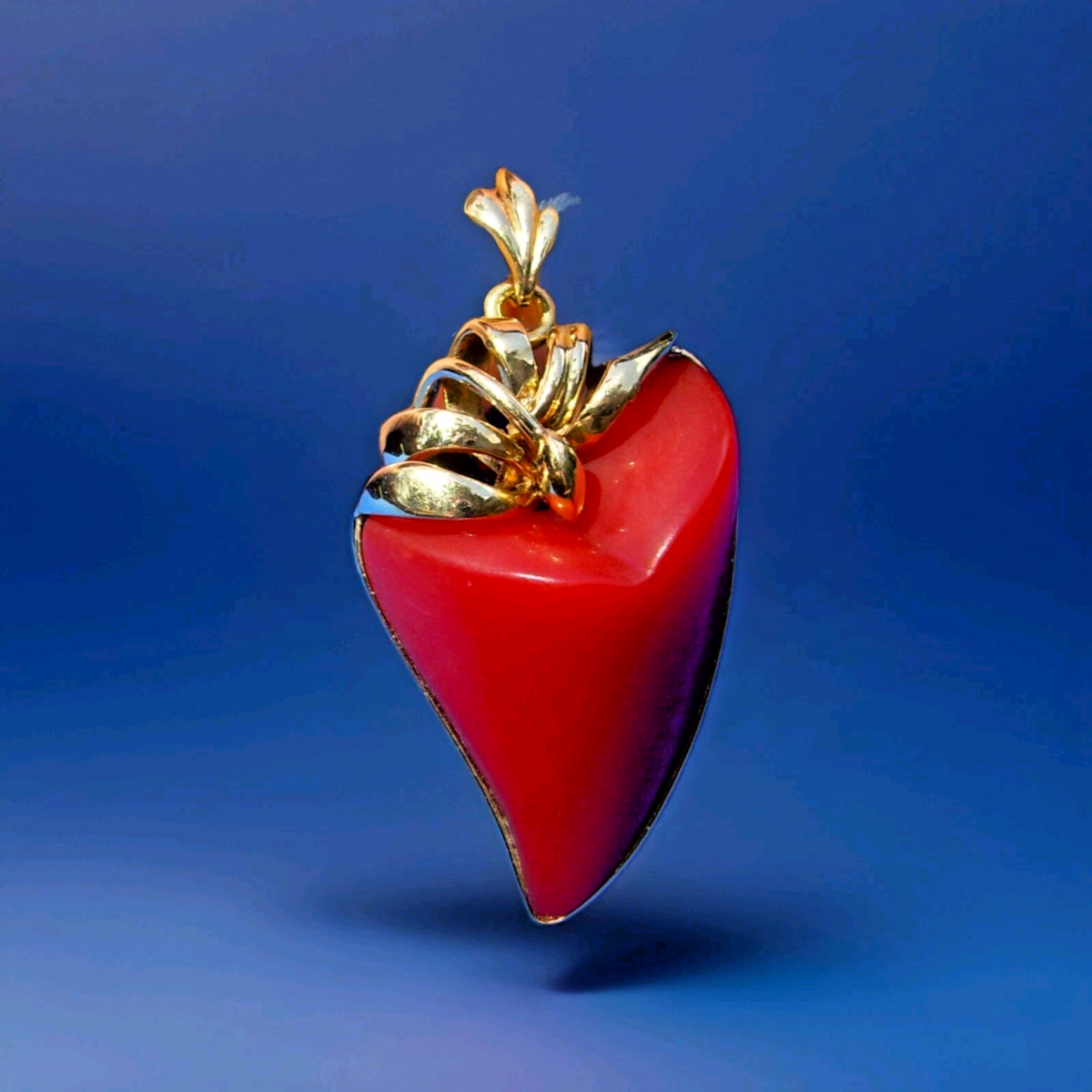 ORIGINAL DESIGN RED CORAL PENDANT 18K GOLD.