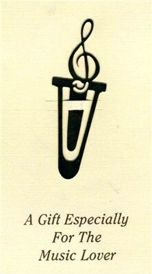 Treble Clef 24k Gold Plated Bookmark A Gift Especially for the Music Lover. Comes with envelope. The bookmark measures about 2 1/2" x 3/4". Is mounted on a card, the card has residue on the back.
