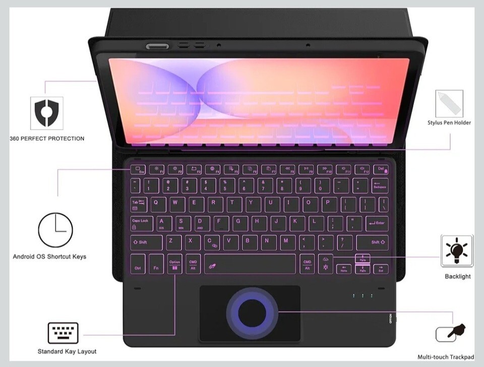 Backlit Keyboard Case for Samsung Galaxy Tab S10 Lite/S9 FE/S10 FE
