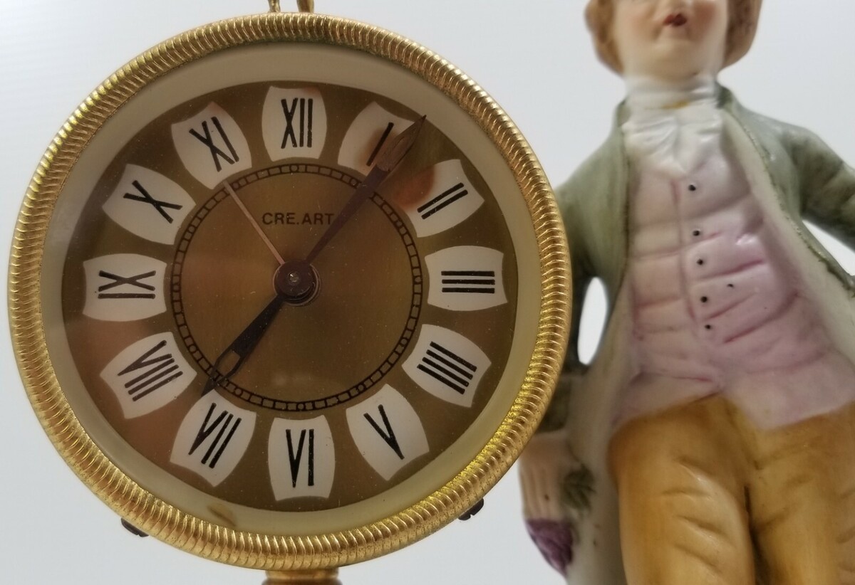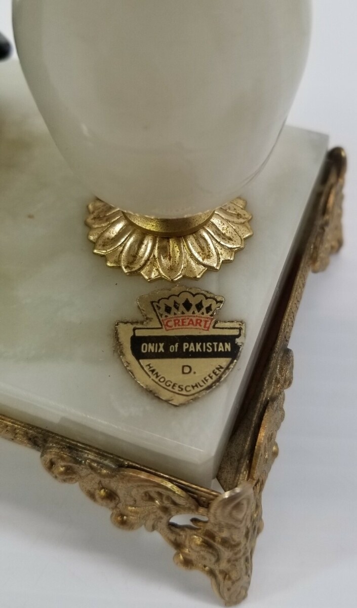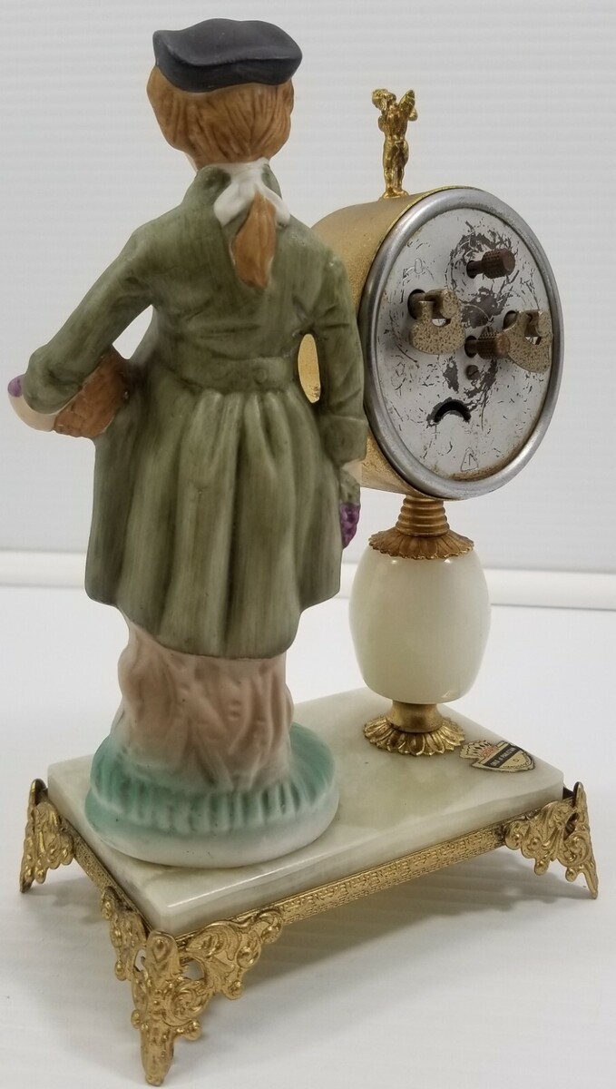 MN) Creart Onix Pakistan Metal Stand Stone Base Mantel Clock Colonial Man Figure