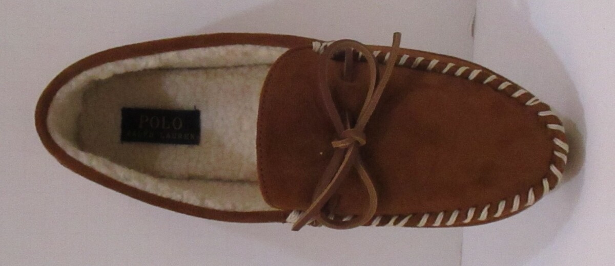 GENUINE POLO RALPH LAUREN SIZE 12 13 BROWN TAN MENS MARKEL MOCCASIN SLIPPERS