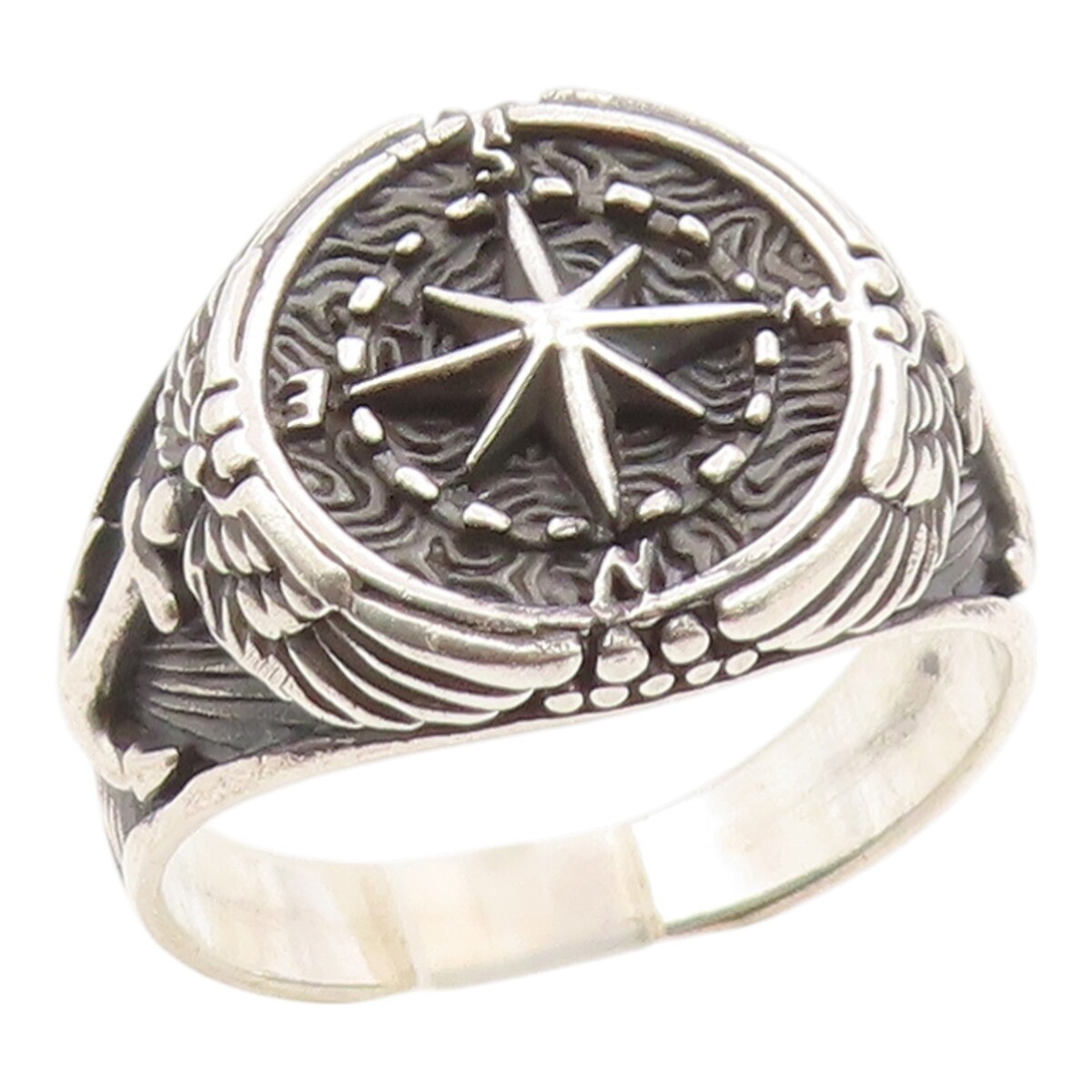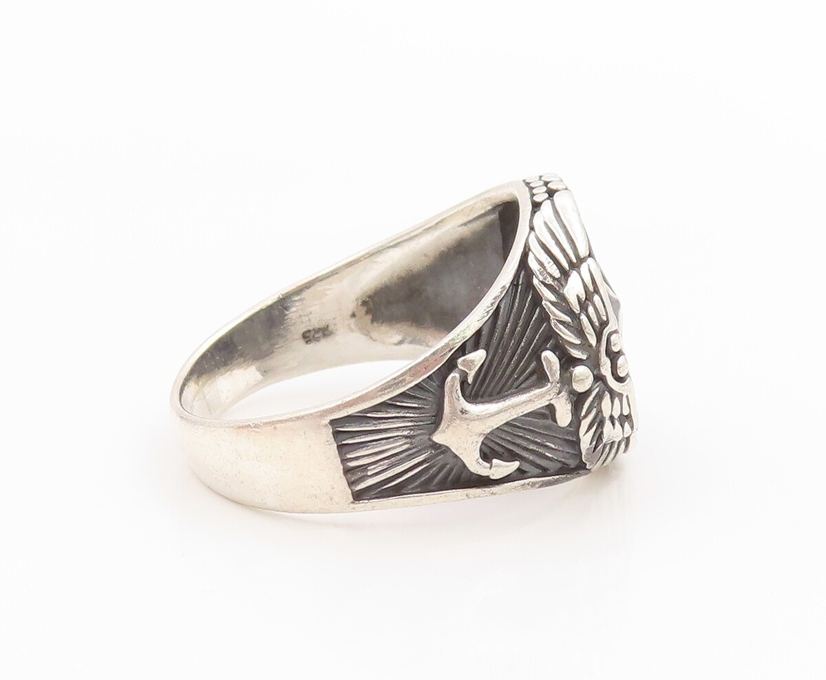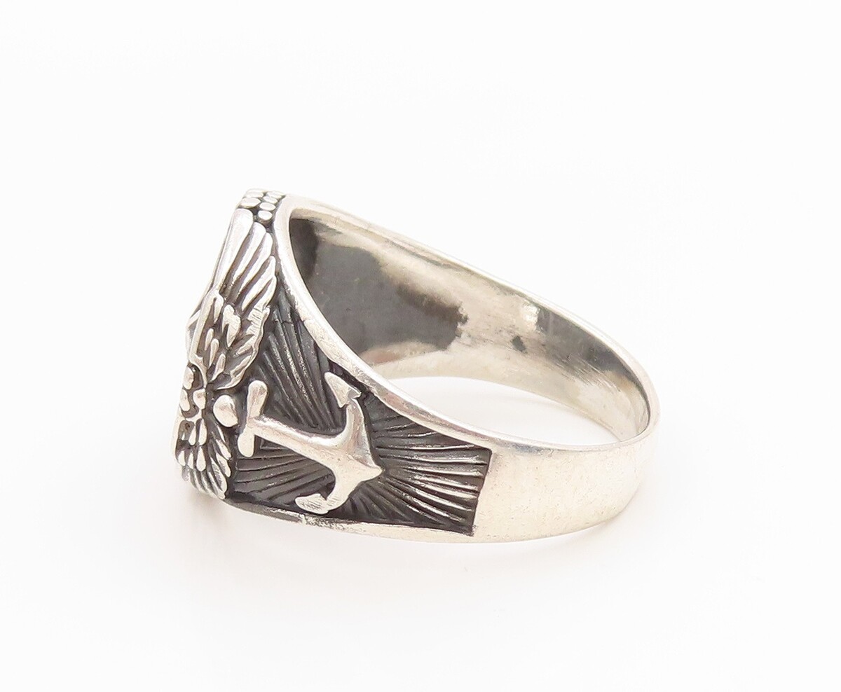 925 Sterling Silver Vintage Ring Nautical Compass & Anchor Band Sz 13 RG36026
