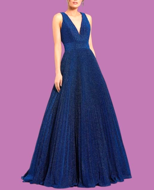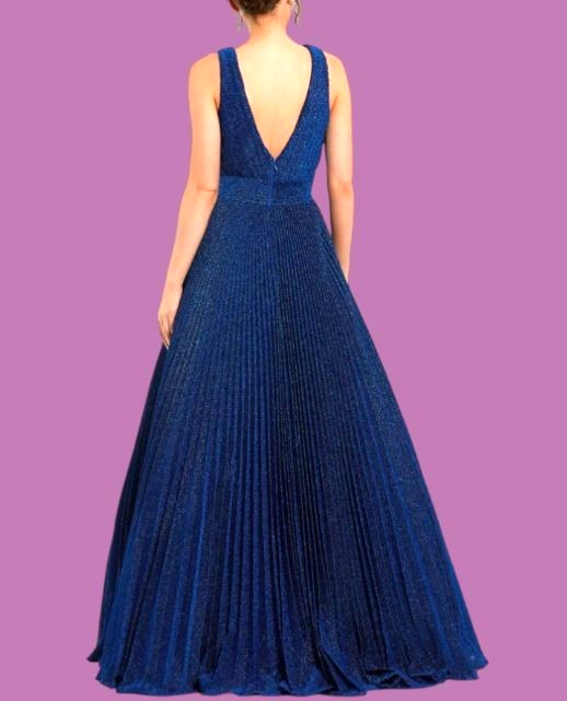 Navy Shimmering Pleated Sleeveless Gown