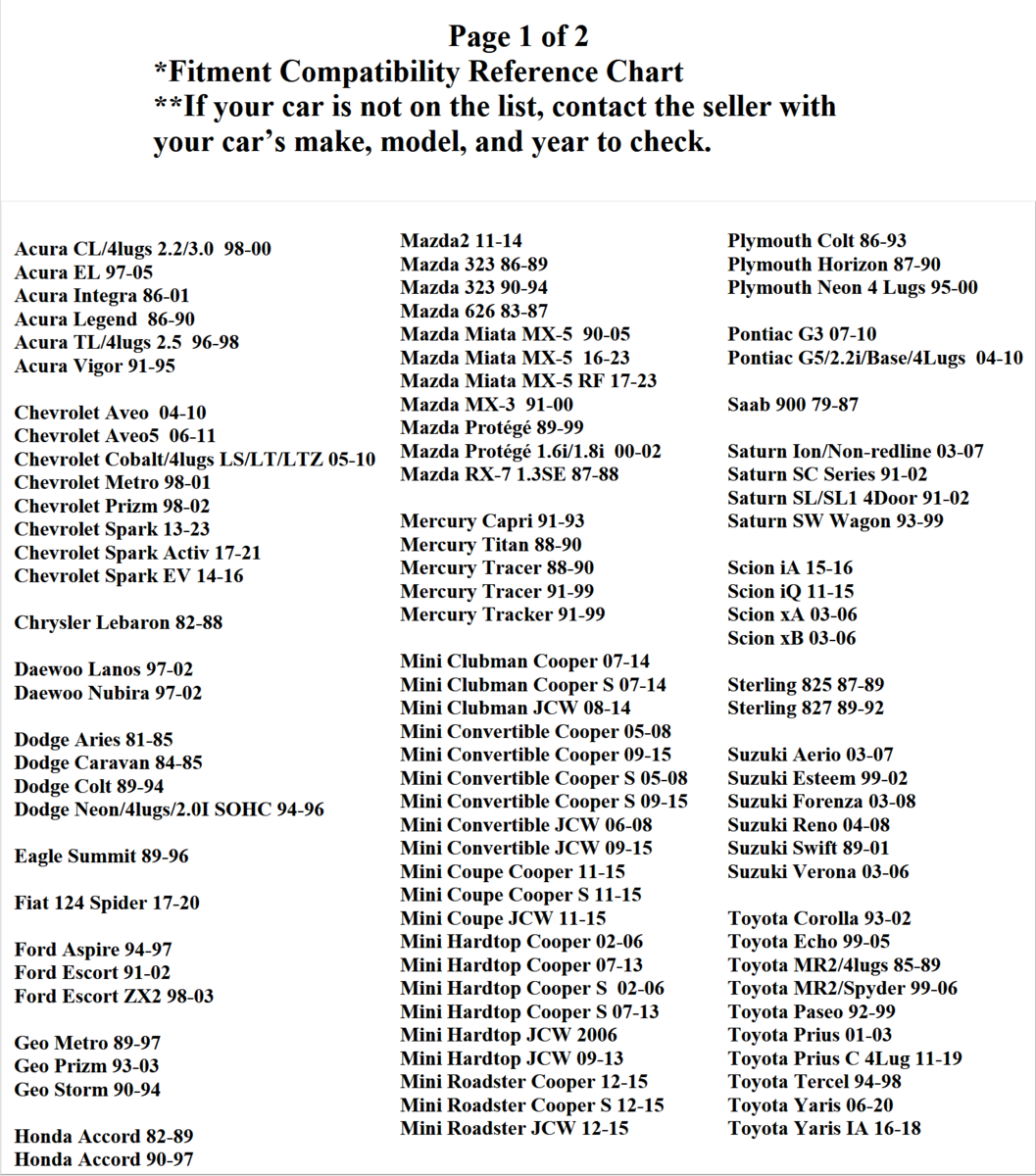 *Bolt Pattern: 4x100/114.3