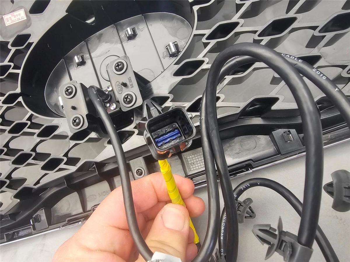 This is an ad for an OEM 2016-2018 Hyundai Kia Sorento Front Chrome and Gray Radiator Grille with camera