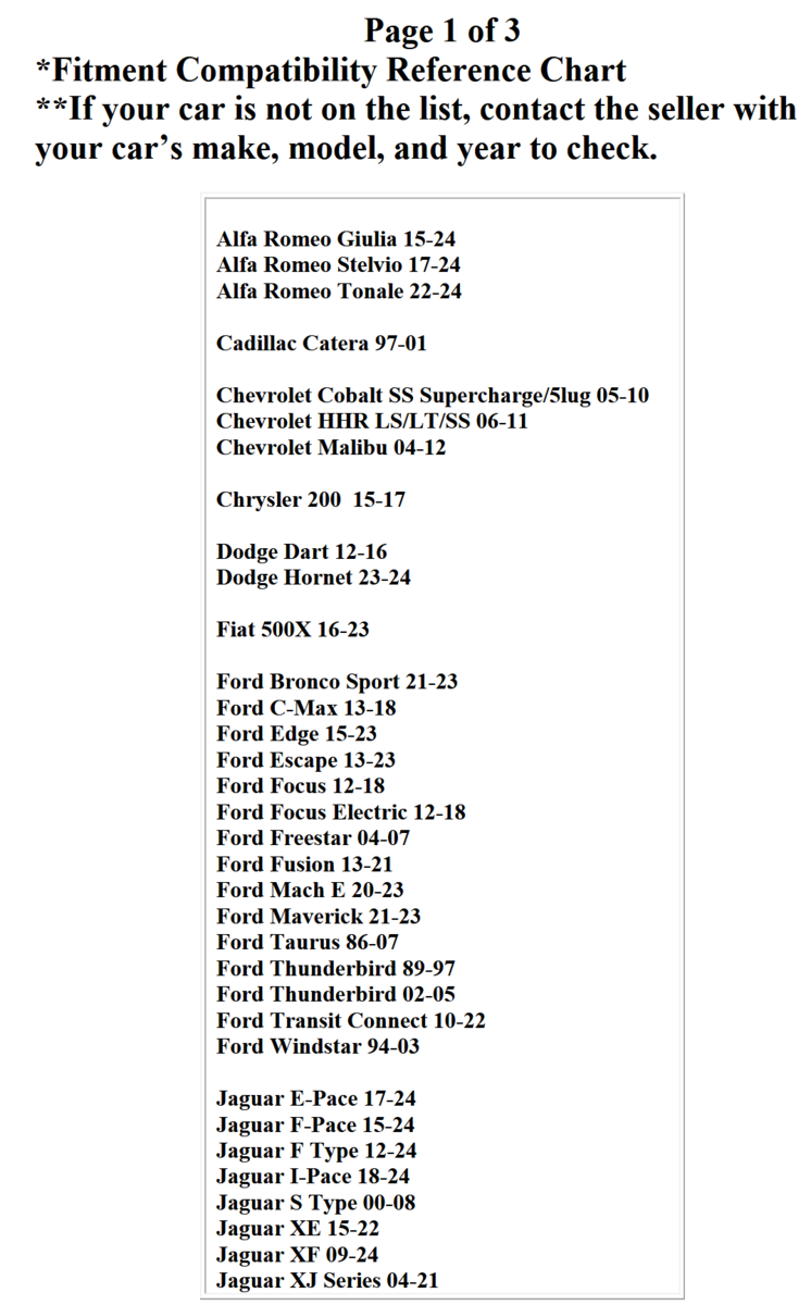 Please verify all fitment details before purchasing. While our guides are provided for reference, the buyer is responsible for ensuring compatibility with their specific vehicle. Any necessary installation accessories (spacers, hub rings, etc.) are the responsibility of the buyer. The seller assumes no liability for fitment-related issues, and total liability is limited to the productโs purchase price. By purchasing this item, you acknowledge and agree to these terms and conditions. Please contact us with any questions or concerns.