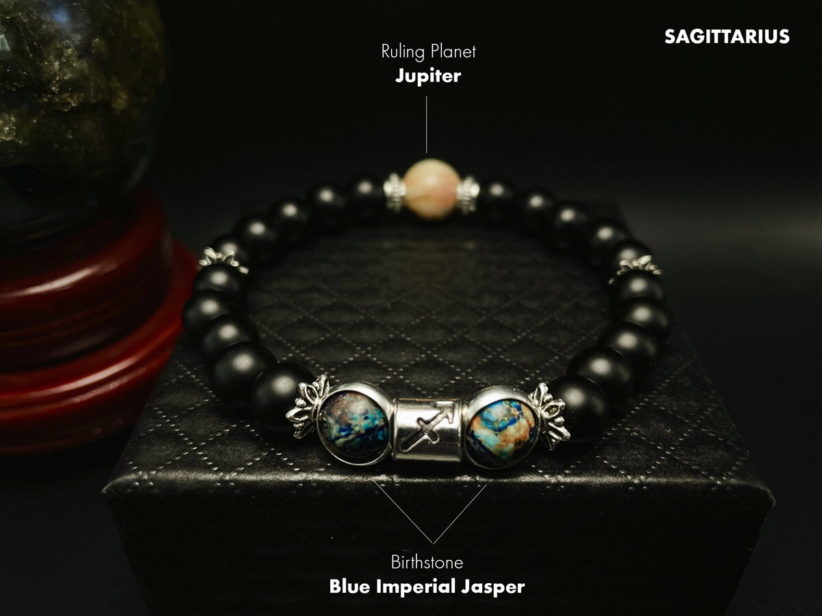 Sagittarius Zodiac with Blue Imperial Jasper Birthstone and Jupiter(Crazy Lazy A