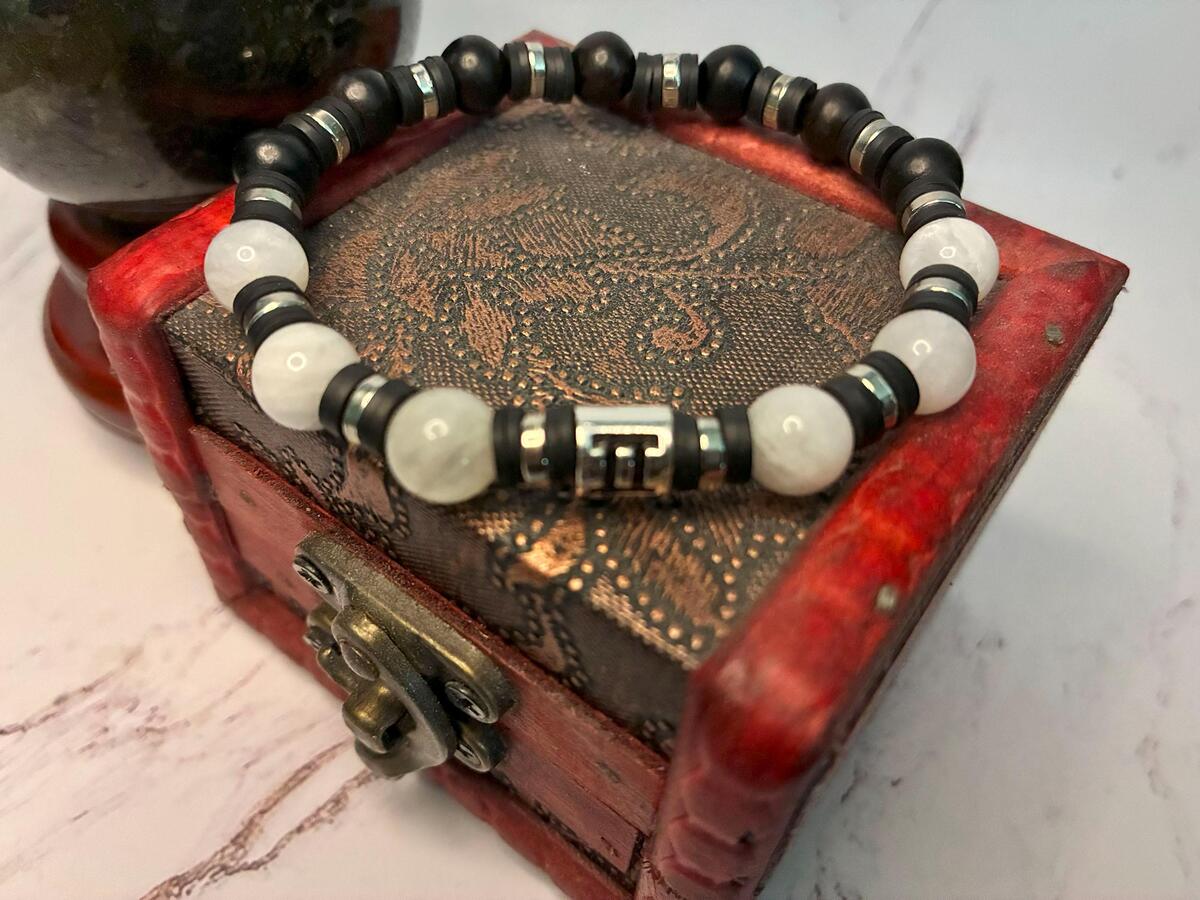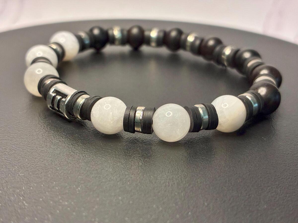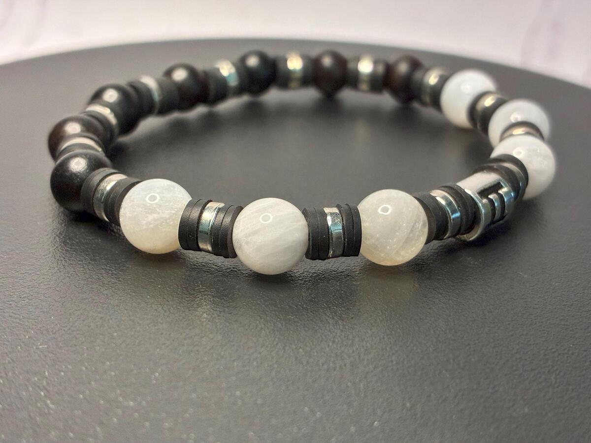 The Gemini Zodiac Bracelet beautifully captures the essence of the Gemini sign through its thoughtful design and meaningful materials. Featuring luminous Moonstone gemstones, the bracelet embodies Gemini's qualities of intuition, curiosity, and adaptability, as Moonstone is known for enhancing mental clarity and emotional balance. The dark wood beads add an earthy, grounding element that complements the lively and energetic nature of Gemini. Interspersed between each bead are sleek black and silver spacer beads, which lend elegance and a touch of modern sophistication to the piece. Moonstone's shimmering, iridescent glow resonates with Gemini's duality and ever-changing personality, highlighting their ability to adapt and thrive in diverse situations. Overall, this bracelet is not only a stylish accessory but also a powerful talisman that aligns with Geminis vibrant spirit. It serves as a reminder of their innate curiosity, quick wit, and the harmonious balance they seek within themselves.
