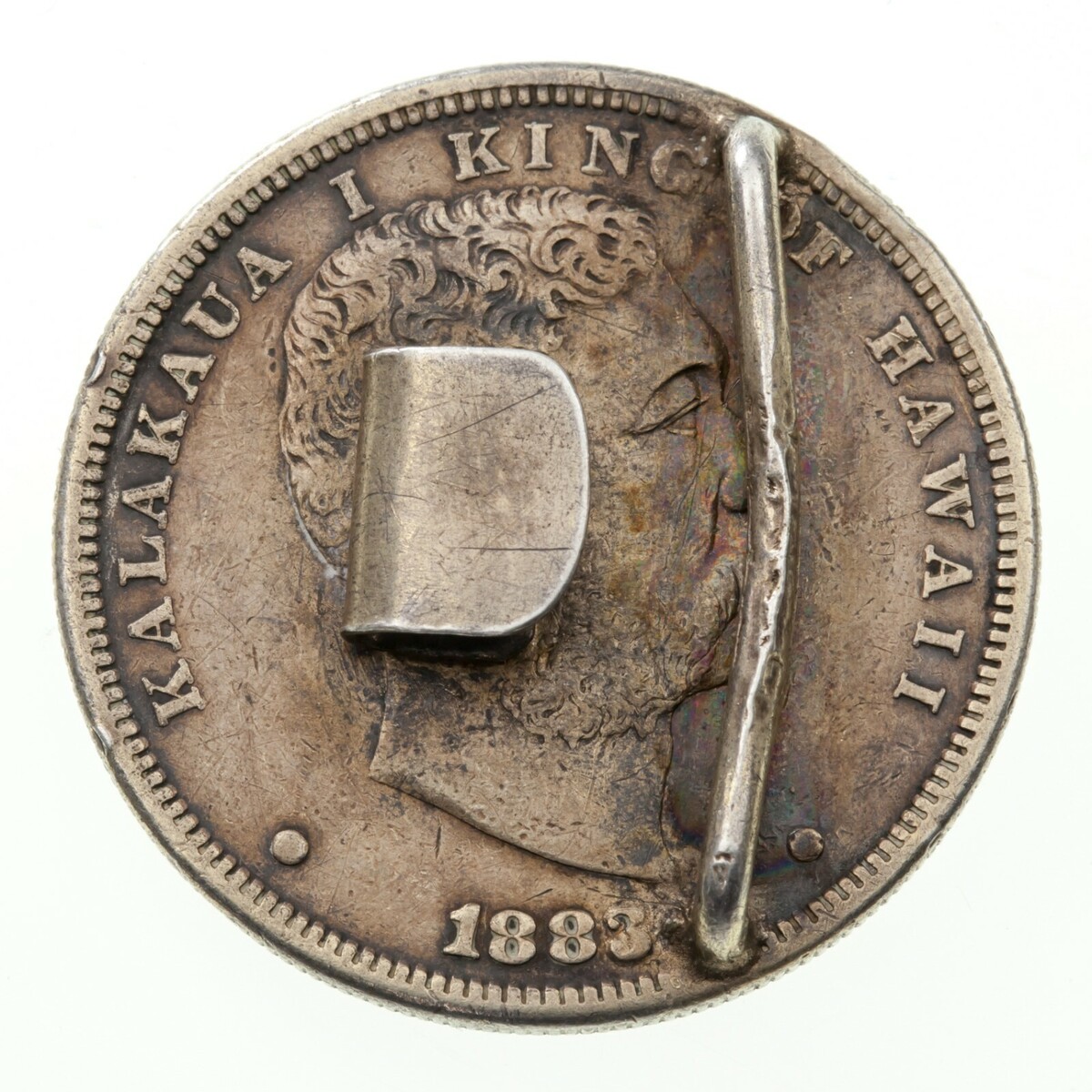 1883 Hawaii -Dollar, umgebaut in Gürtelschnalle mit Emaillefarbe