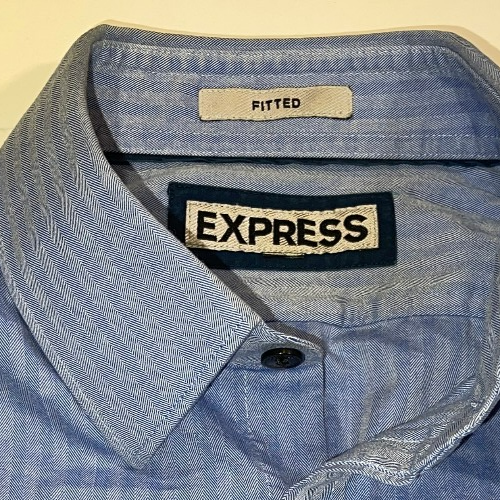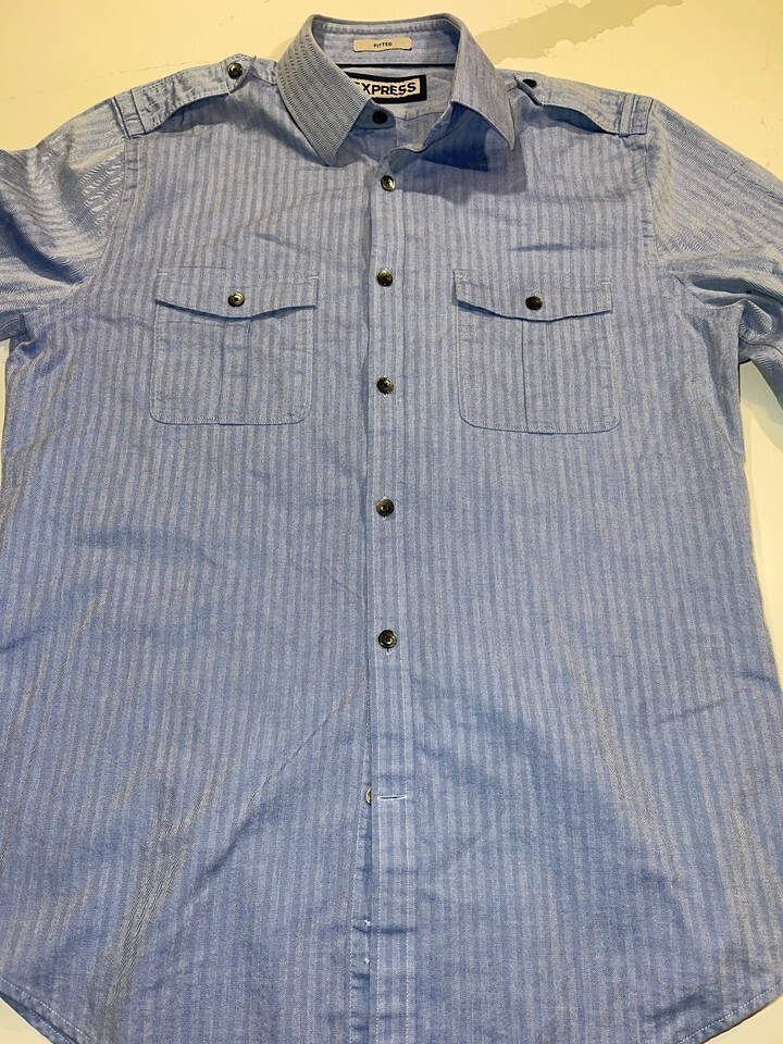 DESIGNER EXPRESS FITTED BUTTON TUCK IN LONG SLEEVE DRESS BLUE SHIRT SIZE MEDIUM