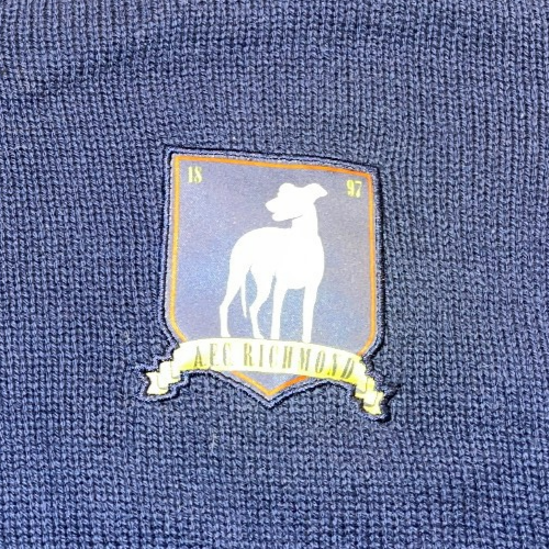 DESIGNER TED LASSO AEC RICHMOND SOFT RIBBED V-NECK SWEATER MENS BLUE MEDIUM