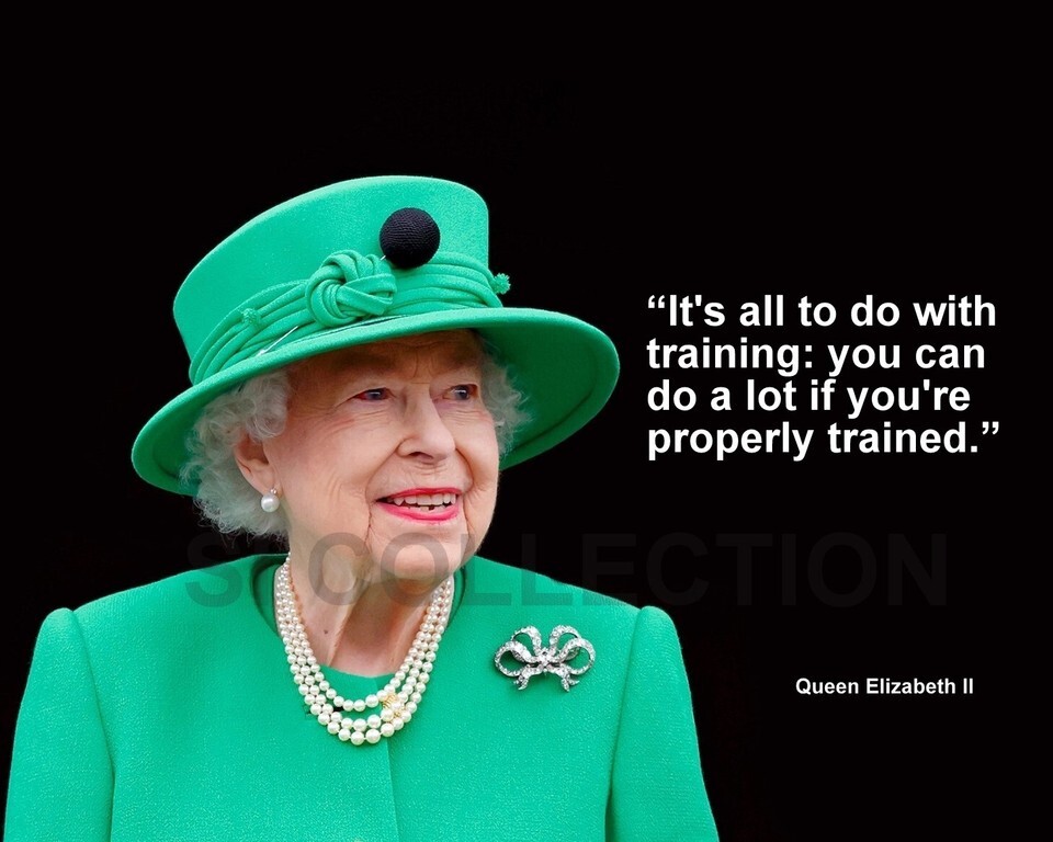 QUEEN ELIZABETH II "IT'S ALL TO DO WITH TRAINING..." QUOTE PHOTO VARIOUS SIZES