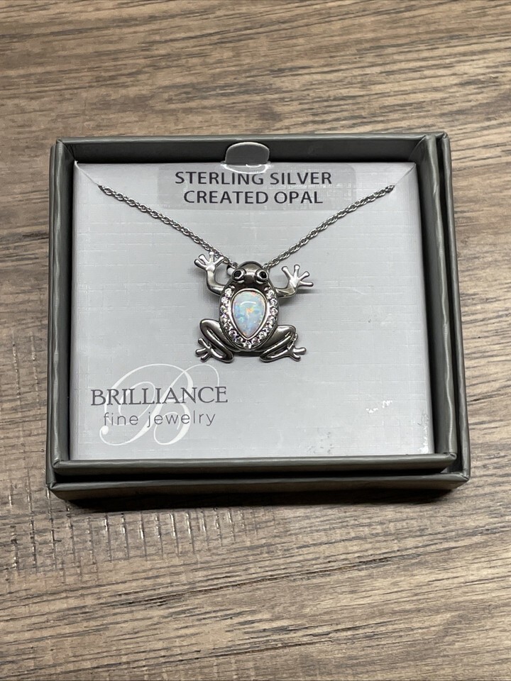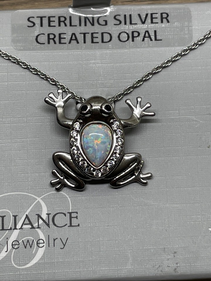 Sterling Silver 925 Opal Frog Pendant Charm 18" Necklace KG
