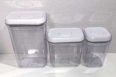 Set of 3 OXO Good Grips POP airtight food storage containers.