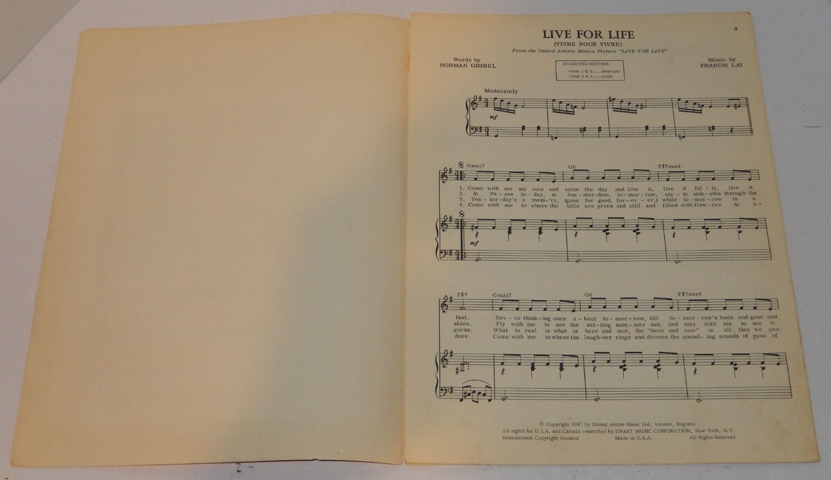 Live For Life Sheet Music 1967 Francis Lai and 50 similar items