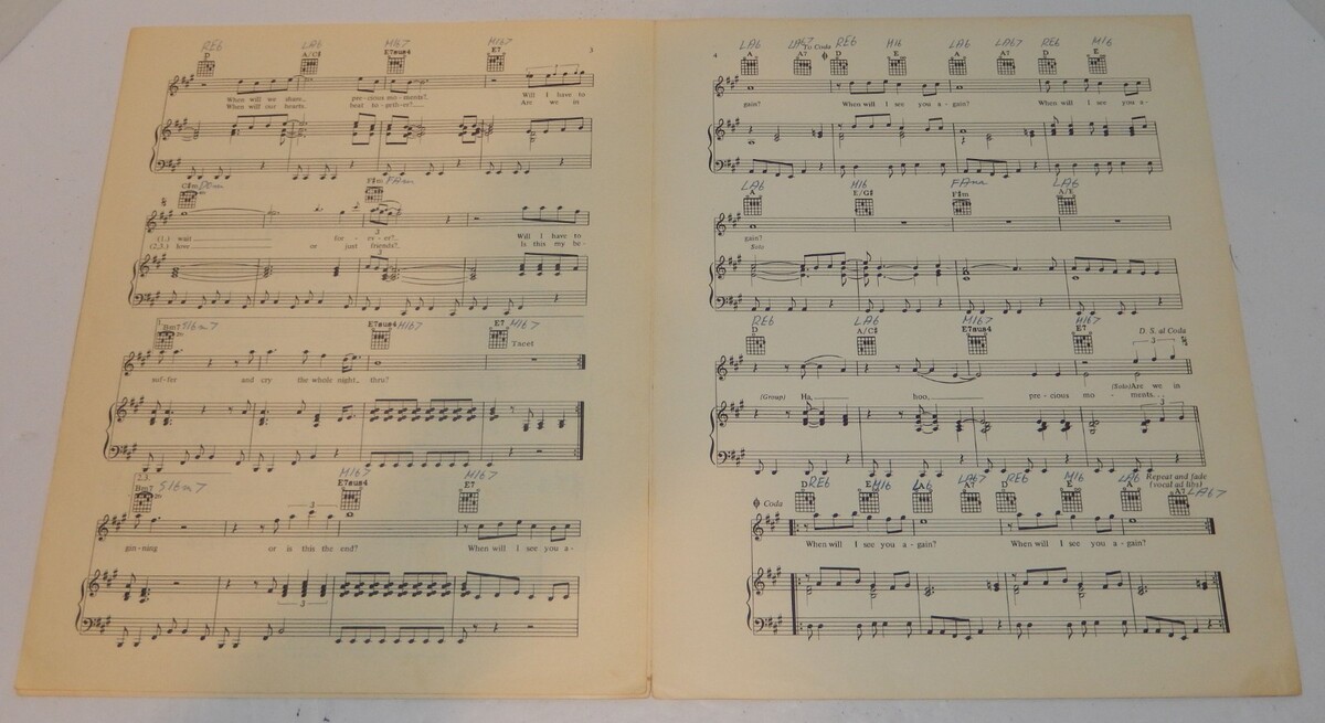 When Will I See You Again Sheet Music 1974 The Three Degrees Gamble Huff Vintage