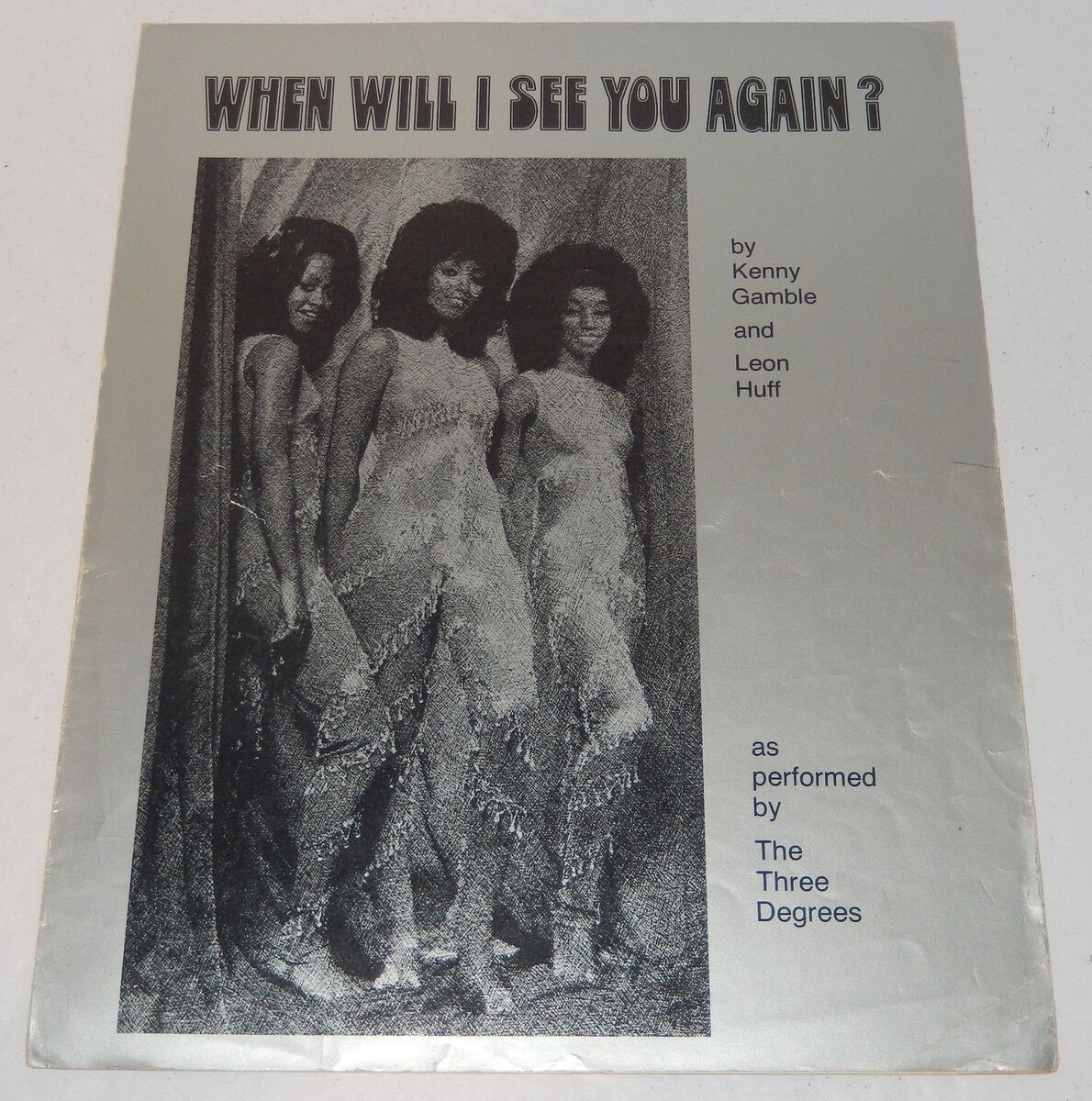 Up for sale is an original vintage sheet music folio for the classic soul anthem "When Will I See You Again," written by the legendary songwriting duo Kenny Gamble and Leon Huff. This iconic track was famously performed by The Three Degrees and remains a staple of the 1970s Philadelphia Soul sound.