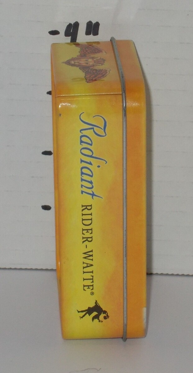 Condition: This Radiant Rider-Waite Tarot Deck is in good used condition. The cards show some shuffling wear, and the tin has a few minor scuffs (please see photos for details)