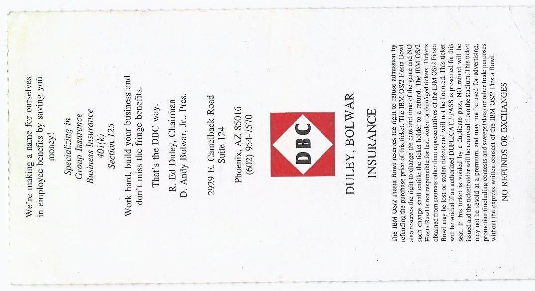 1995 Fiesta Bowl Game Ticket Stub Colorado Buffaloes Notre Dame Fighting Irish