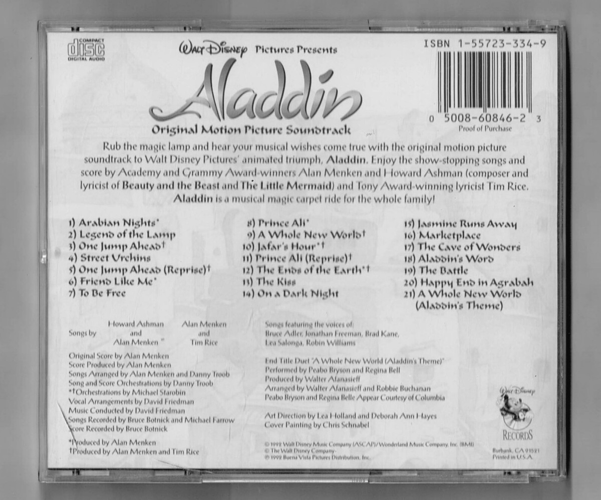 Aladdin Original Motion Picture Soundtrack by Alan Menken (Music CD 1992 Disney)