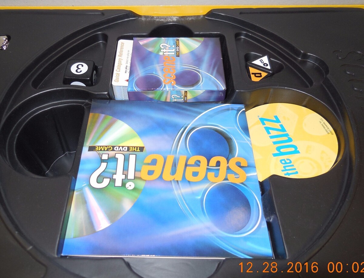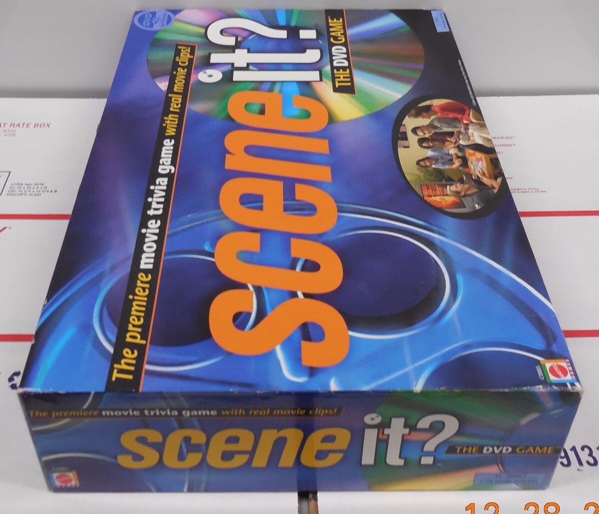 For Sale is a scene it? THE DVD GAME by Mattel. Its In very good USED condition. All contents are in included: 1 game DVD (includes onscreen demonstration of gameplay), 1 game board, 4 metal movers, 160 Trivia Cards in box, 30 Buzz Cards, 4 Reference Cards, 1 Six-Sided Die, 1 eight-sided die, 1 instruction sheet (requires a TV and DVD player - not included). Please ask Any and All Questions prior to purchasing. Fast Same or Next day shipping with Free Delivery Confirmation within the U.S. Payment Due within 7 days of purchase (if you need more time please let us know In advance) we love to combine shipping is always a Yes and Most of the time Additional Items Ship for free.