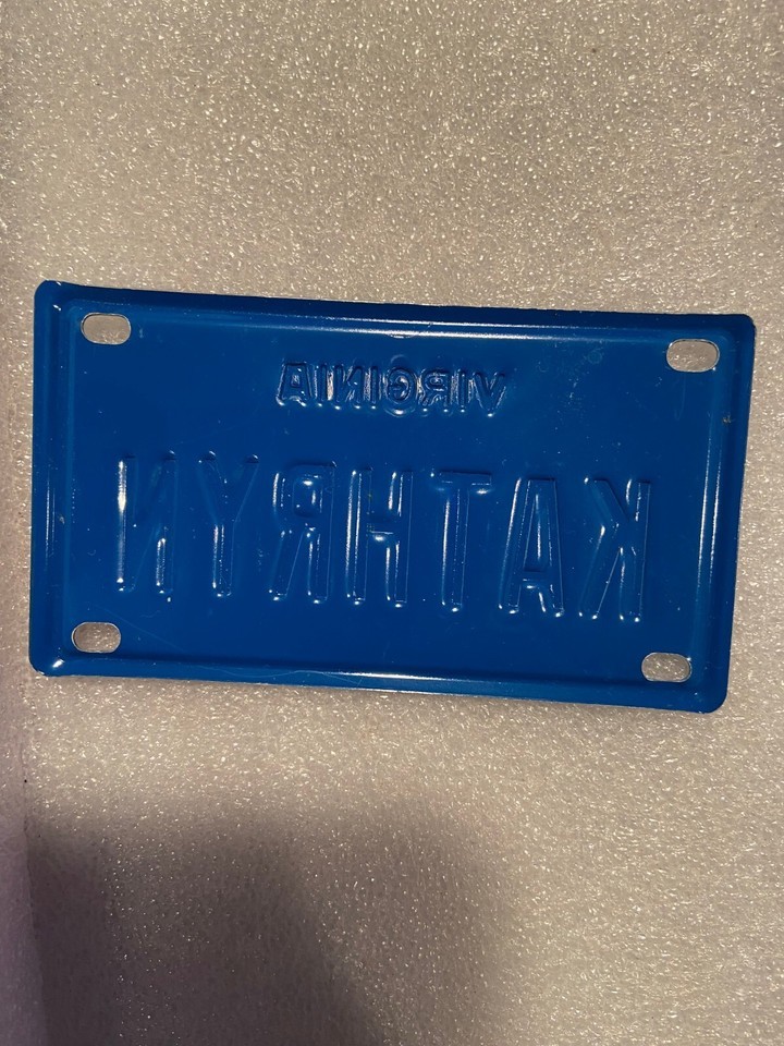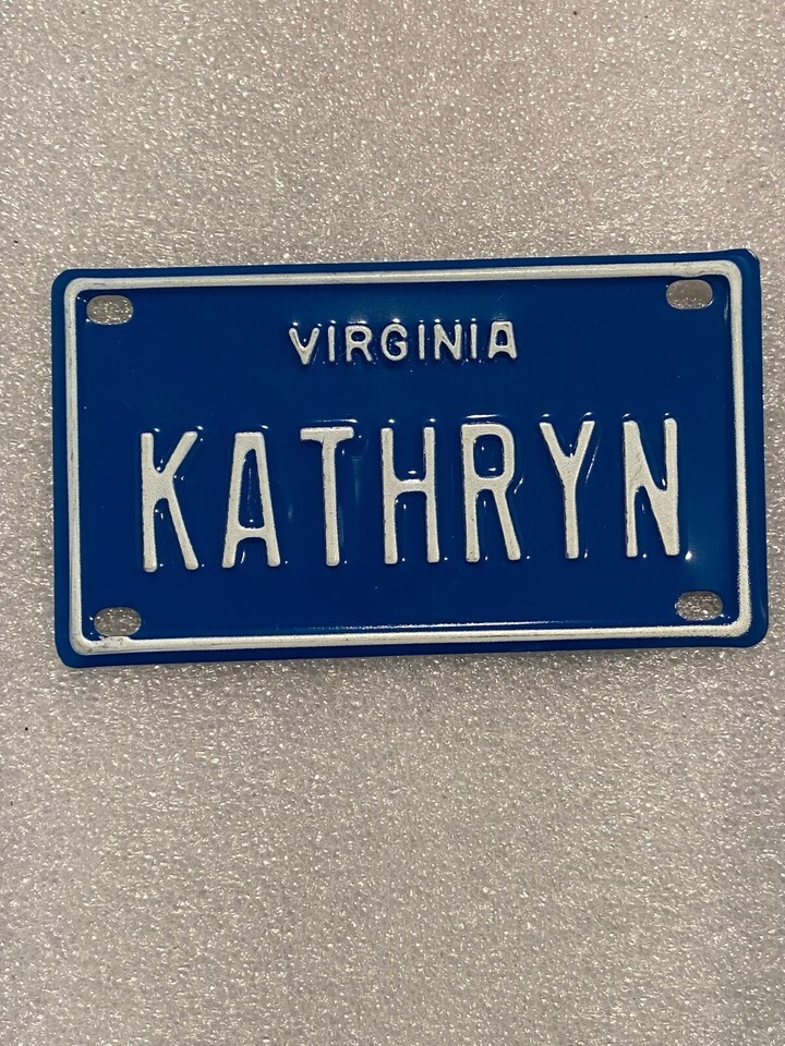 Kid's Bicycle Virgina License Plate Souvenir KATHRYN 2" X 4" *Pre-Owned* DTA