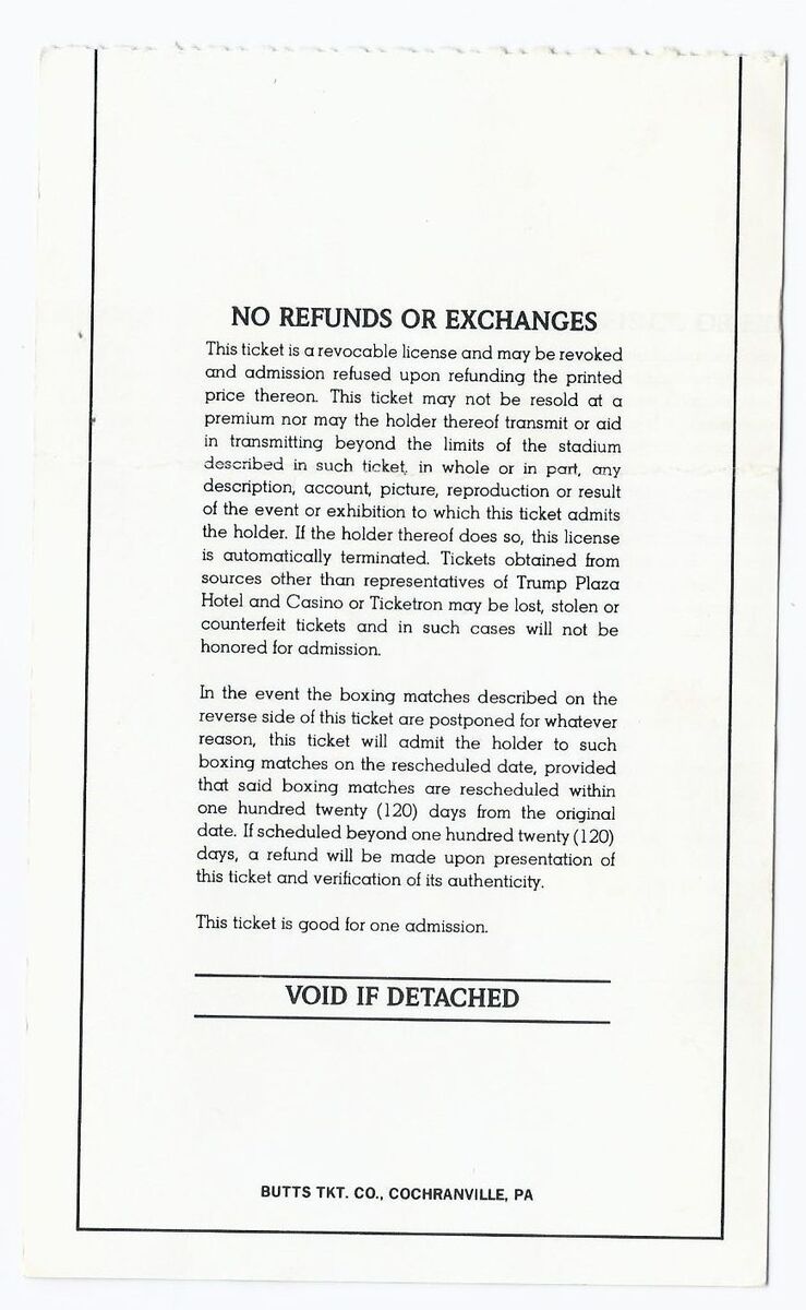 1987 Spinks VS Cooney Boxing On Site Ticket Stub Trump Plaza Atlantic City RARE