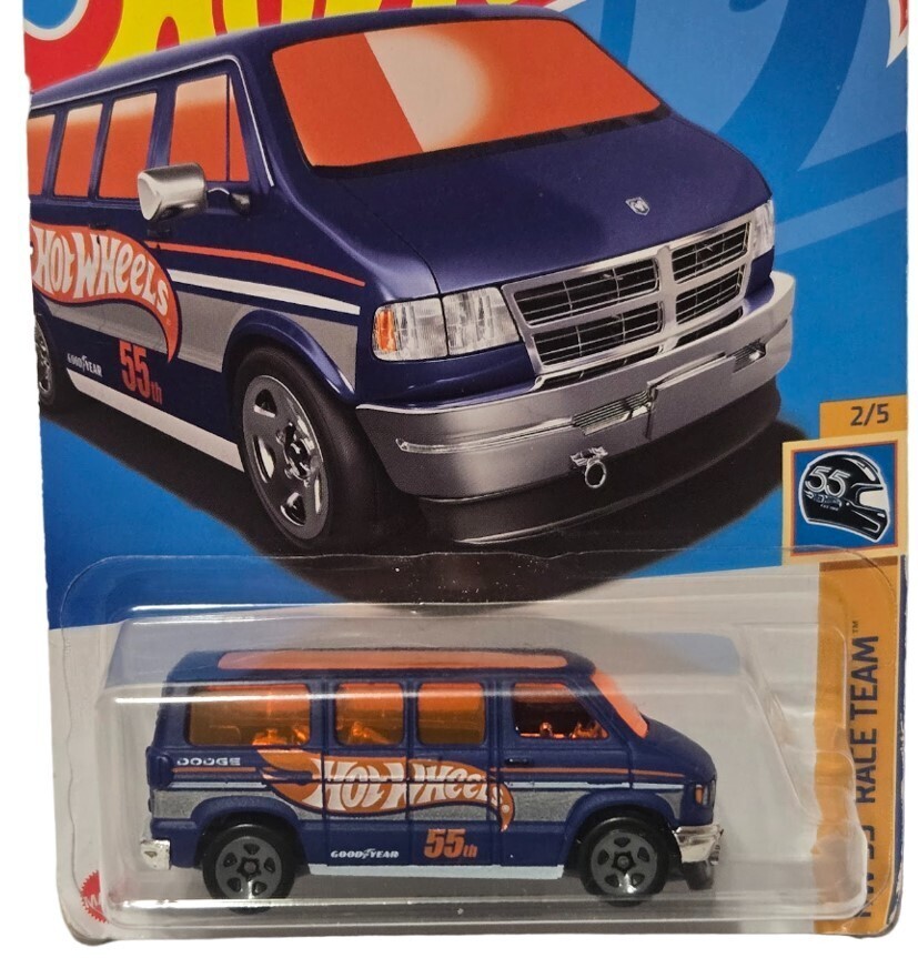 The "Race Team" series is a staple for Hot Wheels enthusiasts, and the 55th-anniversary editions are highly sought after for their unique matte/satin finishes and coordinated branding. Perfect for Dodge fans, van collectors, or those completing the 5-car Race Team set.