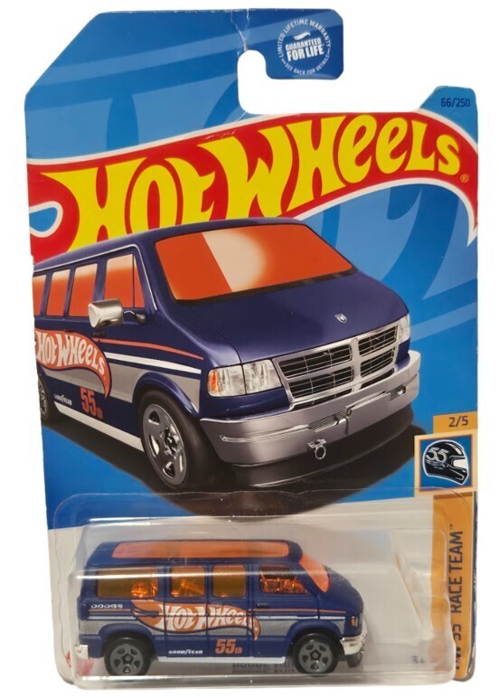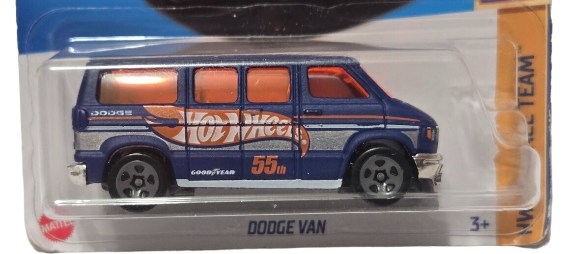 The "Race Team" series is a staple for Hot Wheels enthusiasts, and the 55th-anniversary editions are highly sought after for their unique matte/satin finishes and coordinated branding. Perfect for Dodge fans, van collectors, or those completing the 5-car Race Team set.