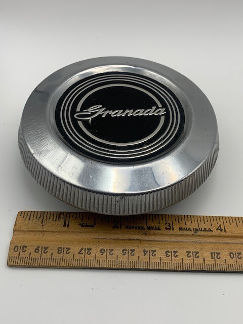 Vintage Ford Granada gasoline cap late 70s early 80s Good solid with some small dents as shown. Please refer to images.