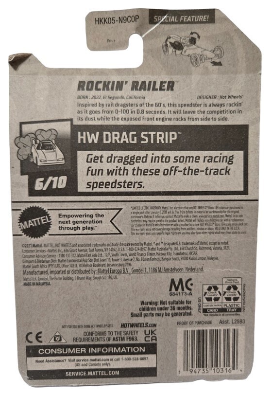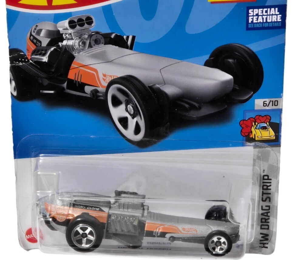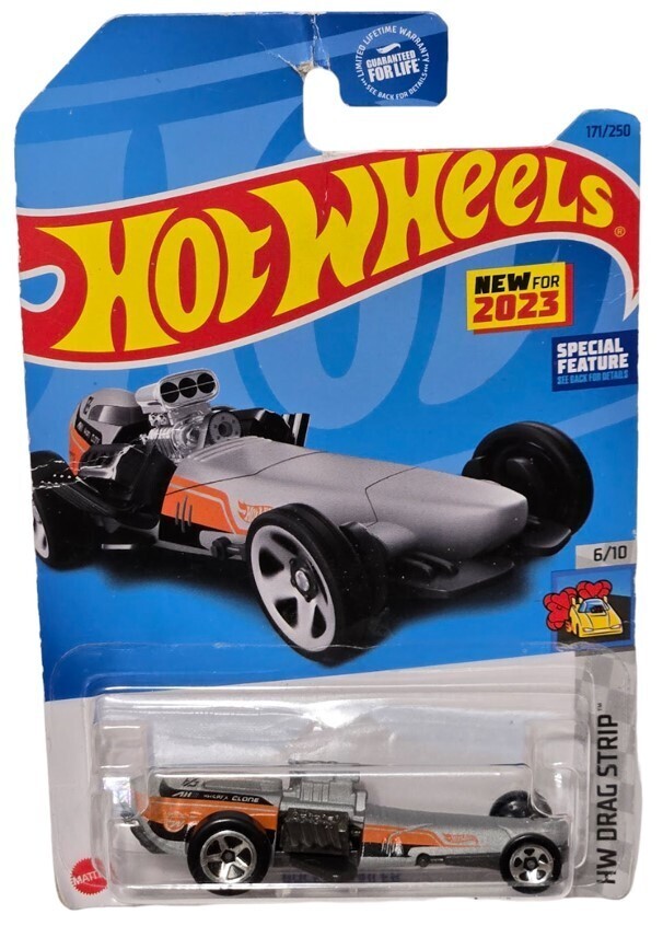 Part of the "New for 2023" collection, this model features a unique "Special Feature"?the exposed front engine actually rocks from side to side as the car rolls! Inspired by 1960s rail dragsters, it?s a must-have for any HW Drag Strip or muscle car collector.