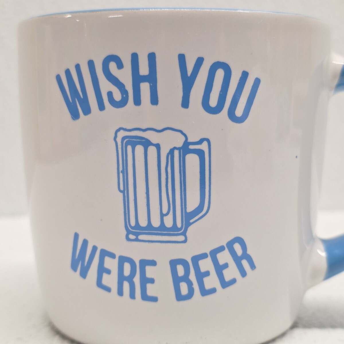 Jimmy Buffet Margaritaville Wish You Were Beer Ceramic Coffee Mug White Blue. Some marks on the inside, see images for condition. Images show actual item that will ship.