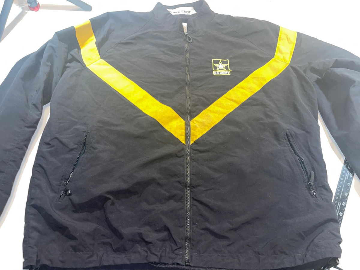 DEFECT US ARMY APFU PHYSICAL FITNESS PT GOLD BLACK ZIP JACKET 59 INCH CHEST 3XL