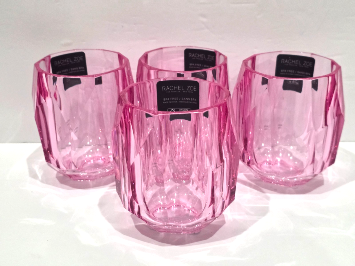 Rachel Zoe Crystal Cut Pink Acrylic Tumbler Glasses Set of 4
