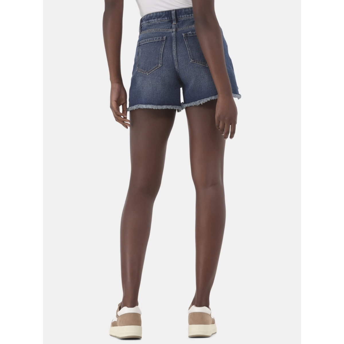 Time and & Tru Womens 14 High Rise Dark Denim Shorts 4" Inseam Fringe Cut Offs